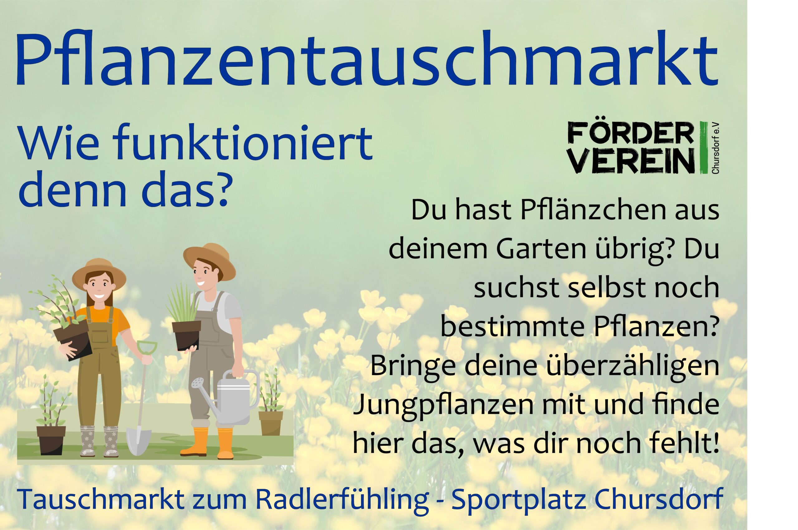 - Erstmalig wird es einen Pflanzentauschmarkt geben. Hier kann jede:r Pflänzchen aus dem eigenen Garten mitbringen, zum Tausch anbieten und sich im Gegenzug andere Pflanzen aussuchen.