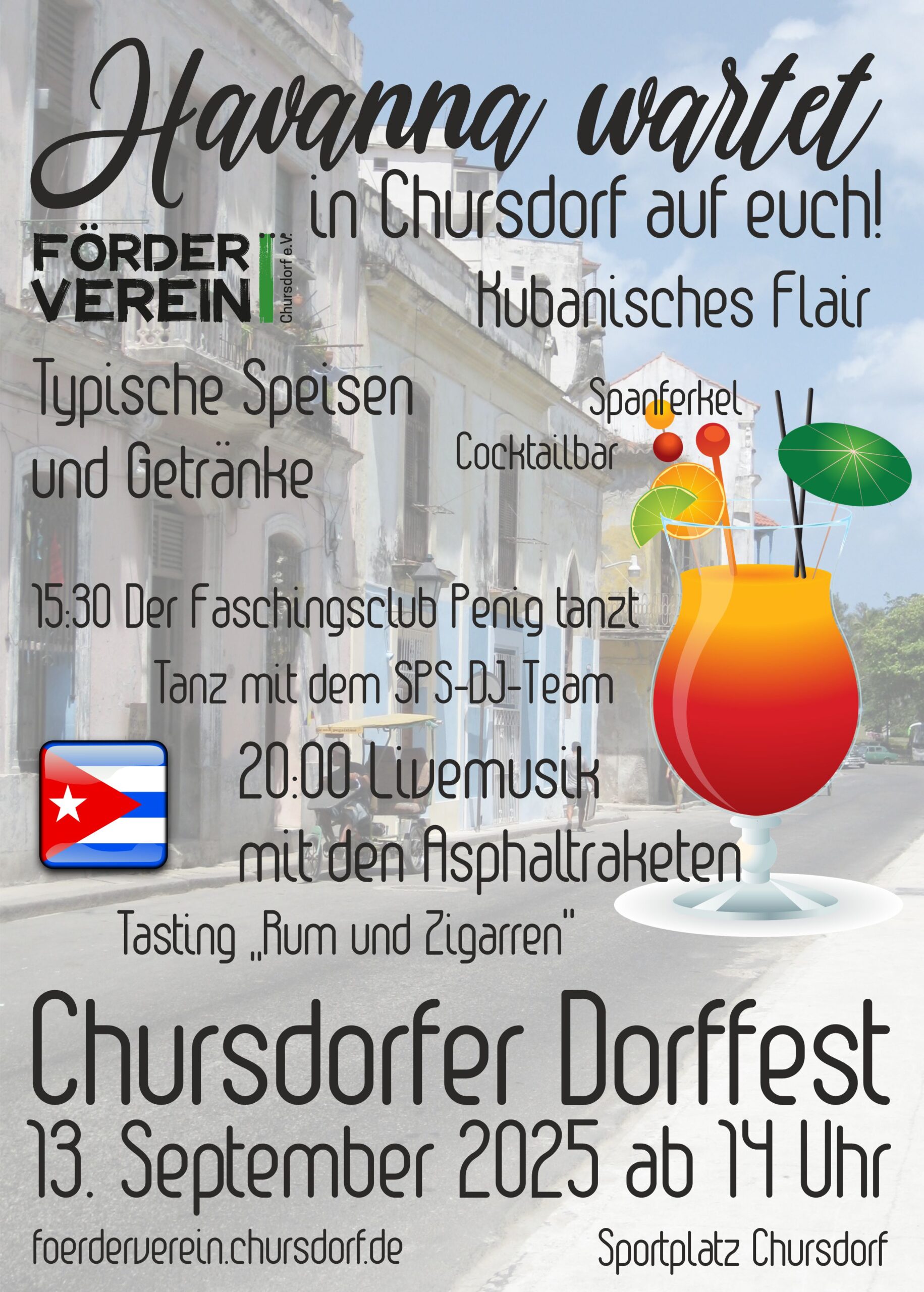 ist das Motto unseres diesjährigen Dorffestes in Chursdorf. Wir freuen uns, euch am Sonnabend, dem 13. September ab 14:00 bei uns in der Werner-Kästner-Halle begrüßen zu dürfen!