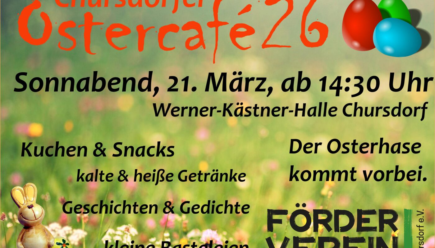 Wir begrüßen gemeinsam den Frühling uns stimmen uns auf Ostern ein. Es gibt selbst gebackenen Kuchen, frisch gebrühten Kaffee und auch kleine Snacks. Die kleinen Gäste basteln Osternester und erspielen sich kleine Osternaschereien, die uns der Osterhase hoffentlich vorbeigebracht hat.
